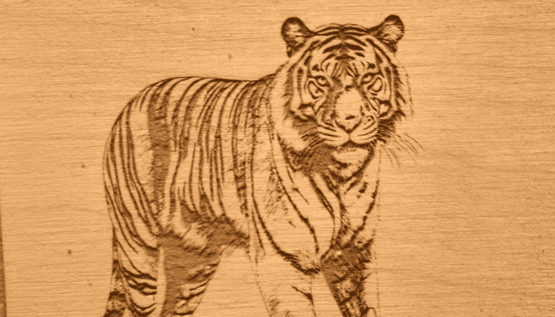 Changing to a high-contrast tiger image produced a perfect, crisp, high-resolution engraving.