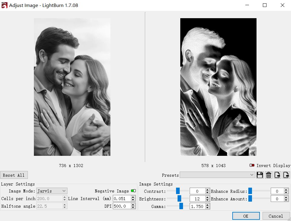 Settings for Photo Engraving:
