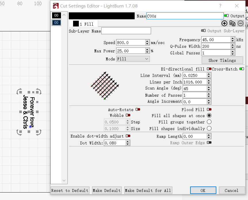 If you’d like to engrave text on the back of the mirror stainless steel, it’s essential to set the correct parameters for clean, readable text. We recommend the following settings for engraving text: