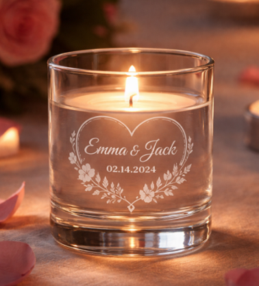 Bring a personalized glass votive to the dinner table and light up the romantic night!